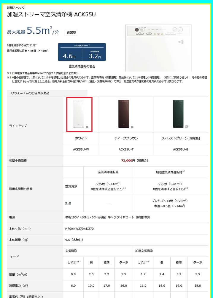 ●加湿方式:500(mL/時)気化エレメント回転式・ダブルパスミキシング方式