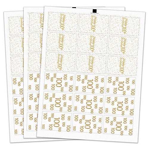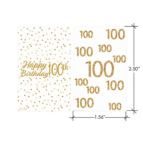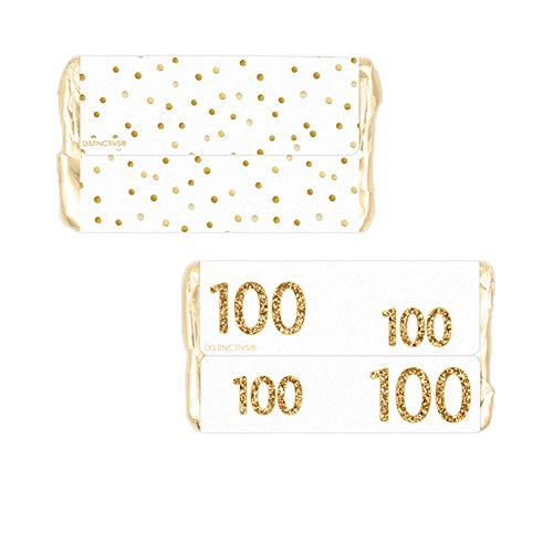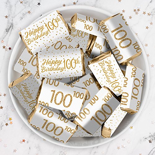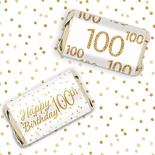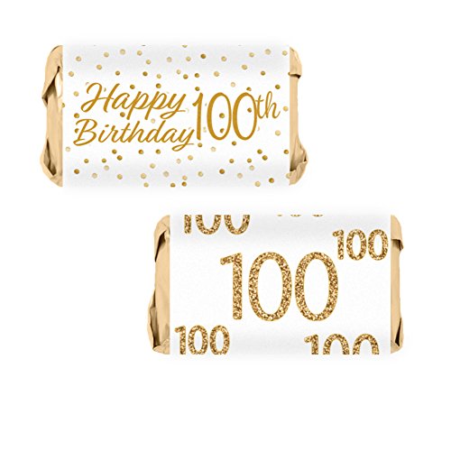 100th Birthday Party Miniatures Candy Bar Wrapper Stickers - White and Gold (54 Count)