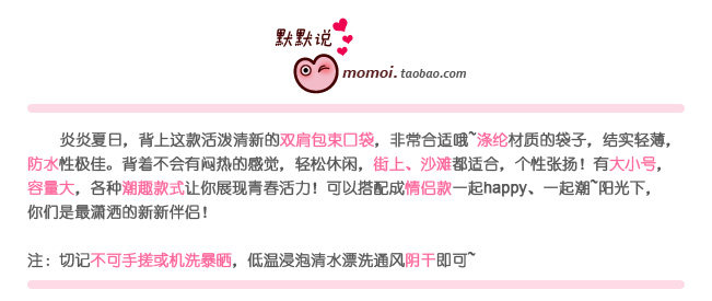 宝贝名称青春潮趣双肩束口袋 情侣款  材   质  涤纶