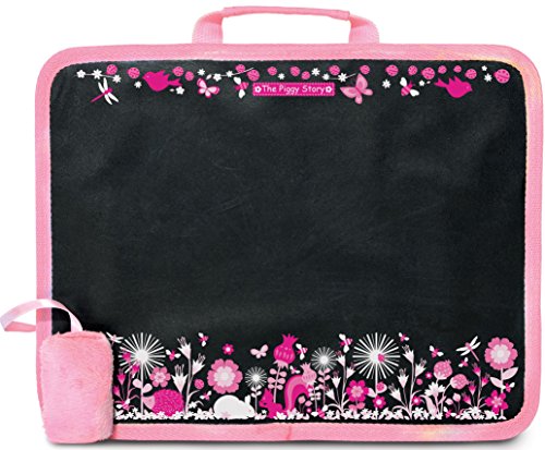 Great on-the-go kit is more than a chalk board and more than a lap desk - it's both! Featuring a sturdy handle, this kit lets kids and families take this item in the car, on a plane, into a restaurant, or wherever you might want an activity that's small enough to go anywhere but big enough for hours of drawing and creativity. The lap desk features two side pockets that fold to the back of the desk when not in use - perfect for keeping chalk and any other small items for your artist secure and tidy. The cushy desk padding makes the lap desk comfortable for your child to use and the fun fabric print will inspire your artist to draw happy scenes. Kit includes 6 pieces of multi-colored chalk and a tethered eraser. The perfect portable kit to make traveling a breeze! Ready, set draw!The Piggy Story is committed to creating products designed to capture young imaginations. Before each product is crafted we ask, "What will captivate a child?" An array of designs from Dragons and Princesses to Piggy Fairies and Piggy Pirates keeps minds engaged to a story all their own! Simple, fun and affordable - crayons, doodle pad, a tote with a fun design... all a creative mind needs to make fantasies come to life. The greatest inventions and technologies surfaced from the wildest imaginations just playing around and just being curious.