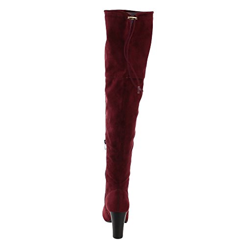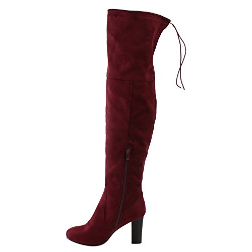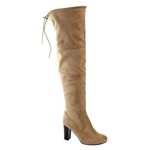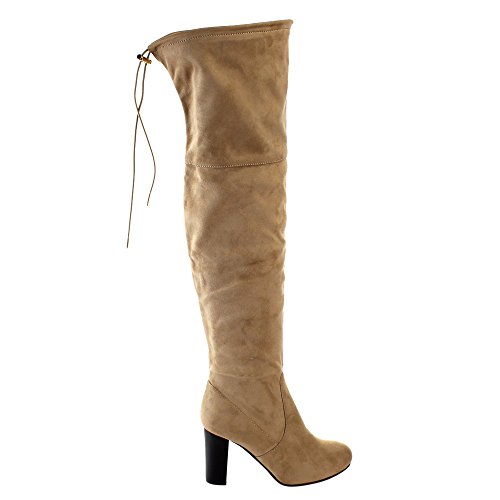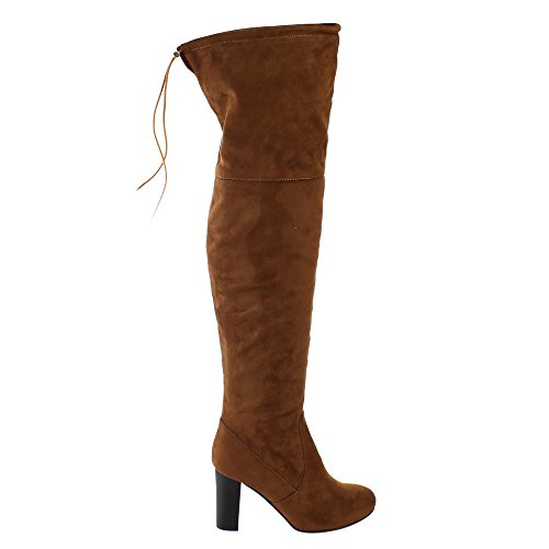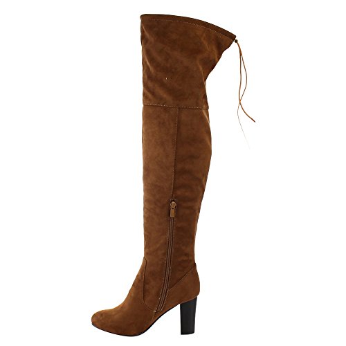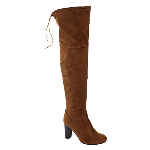 Product Description Exude confidence and modern style in these stunning Over the Knee Boots! They have a faux suede upper, drawstring ties at the top of the shaft, side zipper closure, high block heel and lightly padded insole. 0