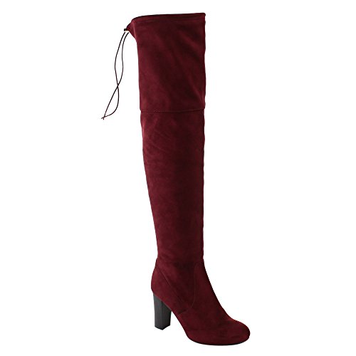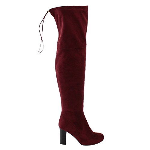 NATURE BREEZE FF02 Women's Drawstring Stretchy Over The Knee Block Heel Boots