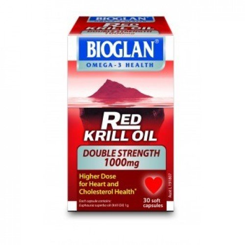 -. Binding : Health and Beauty -. Brand : Bioglan -. Feature : Support Cholesterol Health / Support Cardiovascular health / Support Joint health / Antioxidant / Brain and Eye health -. Label : Bioglan -. Manufacturer : Bioglan -. PackageQuantity : 1 -. ProductGroup : Health and Beauty -. ProductTypeName : HEALTH_PERSONAL_CARE -. Publisher : Bioglan -. Studio : Bioglan -. Title : Bioglan Red Krill Oil Double Strength 1000mg 30 caps