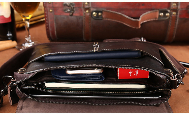 Genuine Leather Type: Genuine Cow Leather Lining:Polyester Closure Type:Zipper Handbags Type:Messenger Bags Internal Structure:cell phone pocket,card pocket,inside pocket etc.