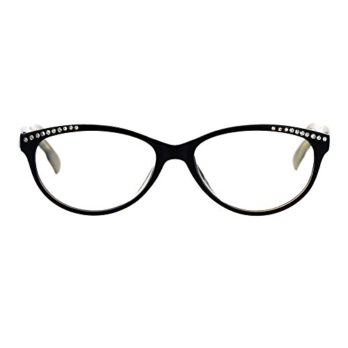 Womens Rhinestone Narrow Oval Plastic Cat Eye Reading Glasses