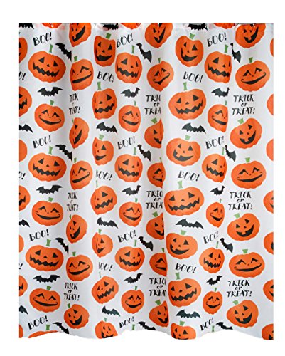 -. Feature : Halloween pattern featuring Jack-O-Lantern pumpkins, bats, and the words Boo! and Trick or Treat! / Shower panel measure 72 x 72 inches. Standard size / Machine wash, Hang dry. Cool iron if needed. / Enhance your bathroom decor this Halloween with this bright and fun shower curtain