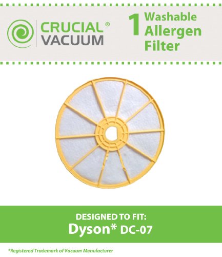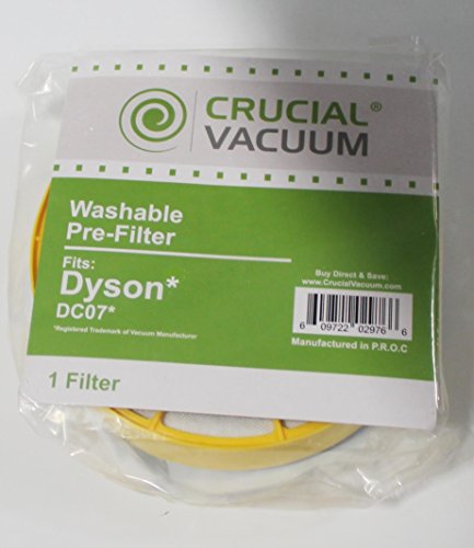 -. Feature : Washable and Reusable Dyson DC07 DC-07 Pre-Motor Filter / Fits ALL Dyson DC07 Vacuum Cleaner Models / Compare to Part # 904979-02, 90497902 / Absolutely Essential for Allergy Sufferers! / Designed and Developed by Crucial Vacuum