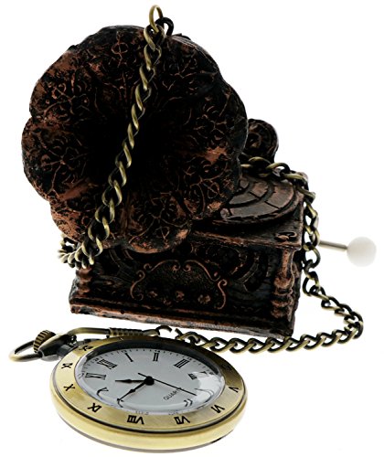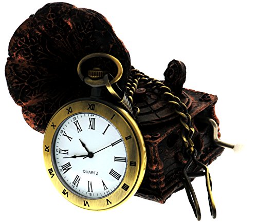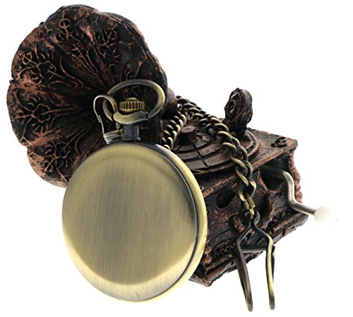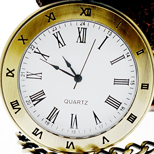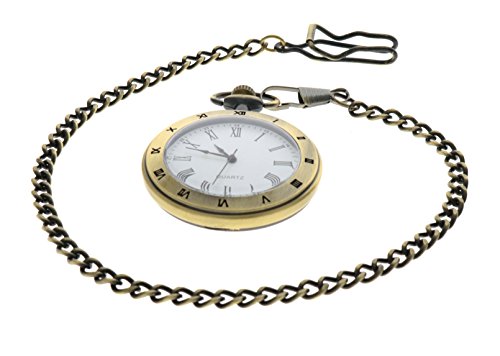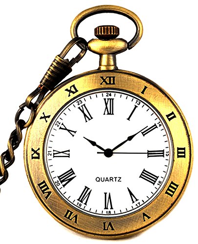 -. Title : Mens Antique Roman Numerals Copper Case for Quartz Pocket Watch With Chain White Dial