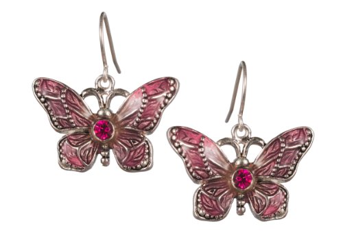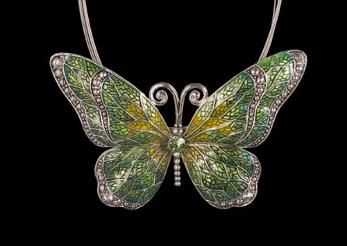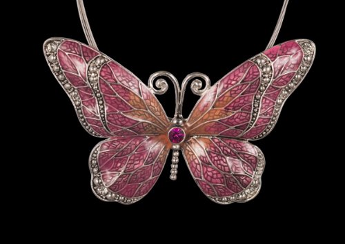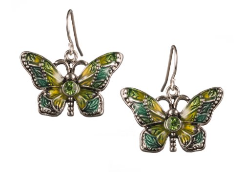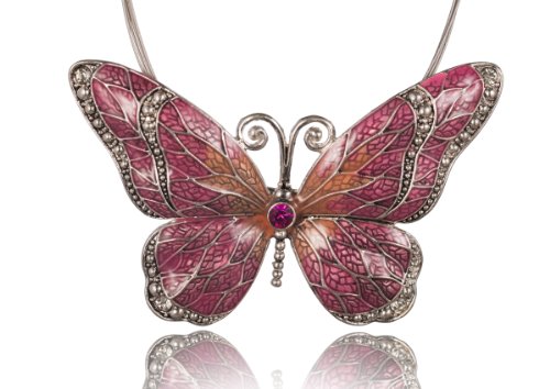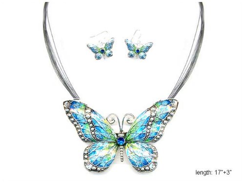 -. Title : Butterfly Pendant Necklace with Enamel Inlay and Matching Earrings Set by Jewelry Nexus