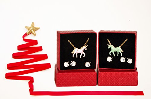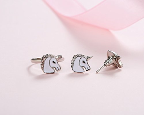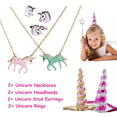 SUPER VALUE-- Includes 2 unicorn pendant necklace,2 ring and 2 pairs stud earrings, 2 Pack unicorn headband. A great gift for your little princess.