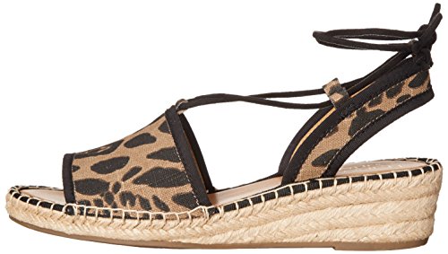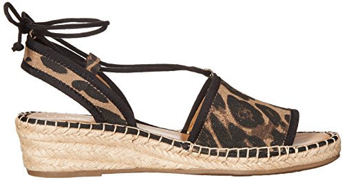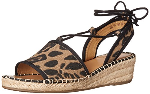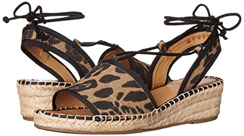Product DescriptionEspadrille wedge sandal with lace up closure; detailed in camel leopard canvas or denim fabric0