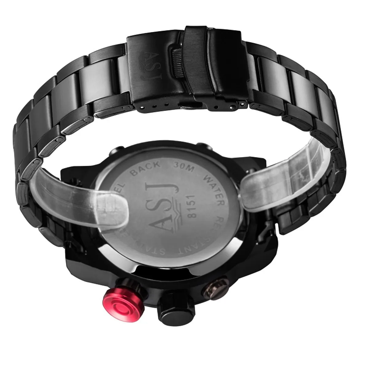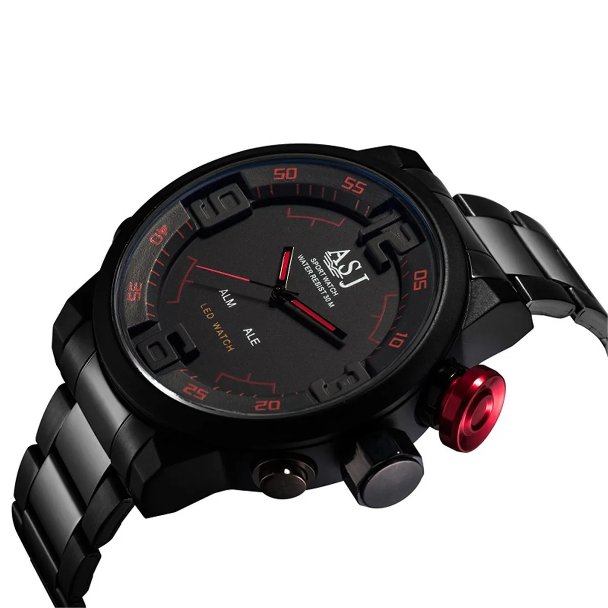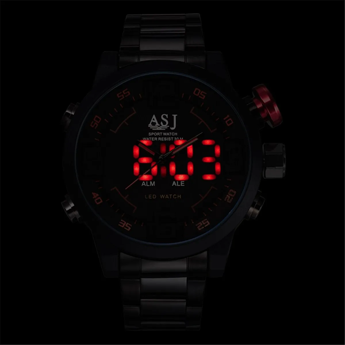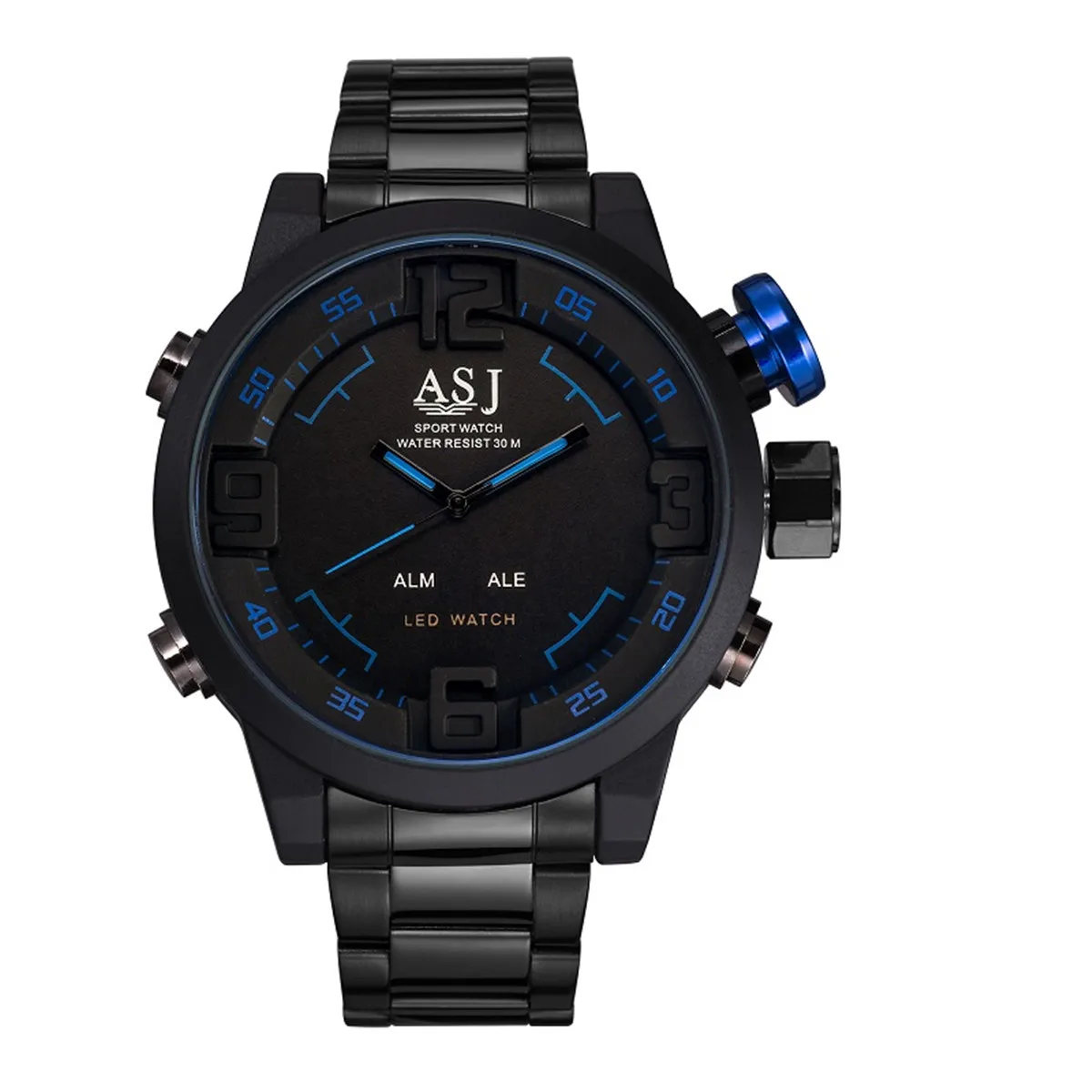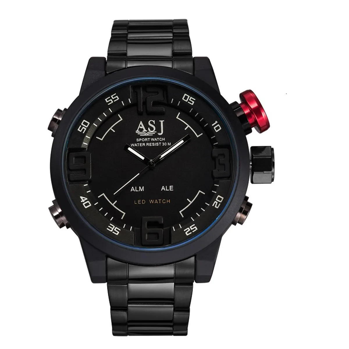 Feature:Stop Watch,Back Light,LED display,Auto Date,Complete Calendar,Diver,Multiple Time Zone,Water Resistant,Swim