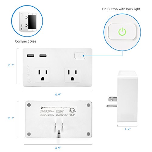 Etekcity Wall Mount Surge Protector Power Strip with 2 Outlets 2 USB Charging Ports, Small for Travel, Office, Hotel & Home, 5610 Joule, 1875W/15A, ETL Certified