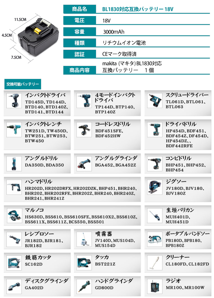 ●マキタ電動工具対応互換バッテリーです。