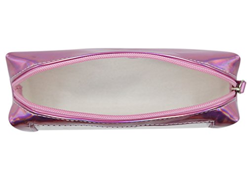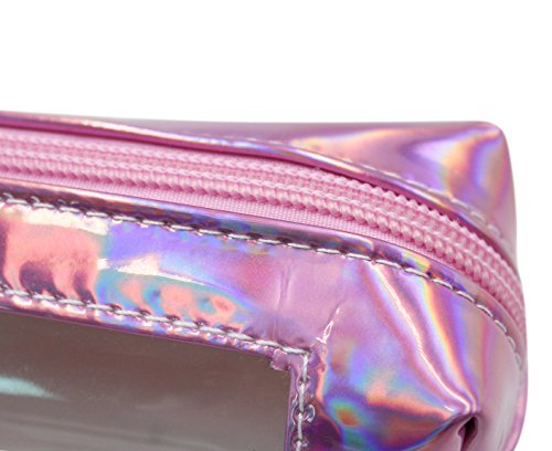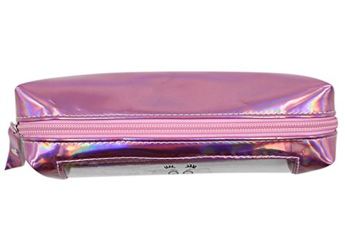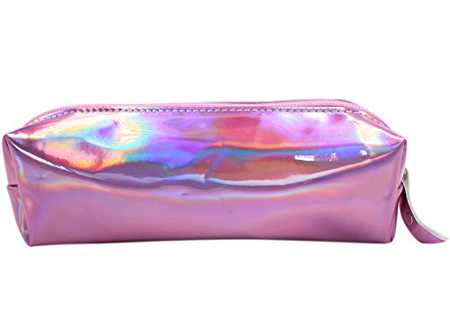 Students Cute Laser Pencil Bag Holographic Pen Case Cosmetic Makeup Holder Coin Pouch(Pink)