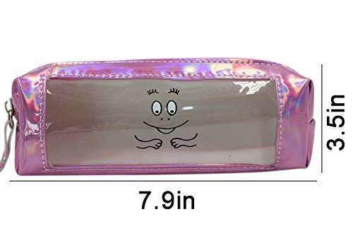 - Design: The front part of pencil bag is transparent with smile face pattern,looks very cute and stylish.Fits in your bag to keep your pens tidy and neat.Nice looking and very compact to carry accessories.4 colors for you choice
