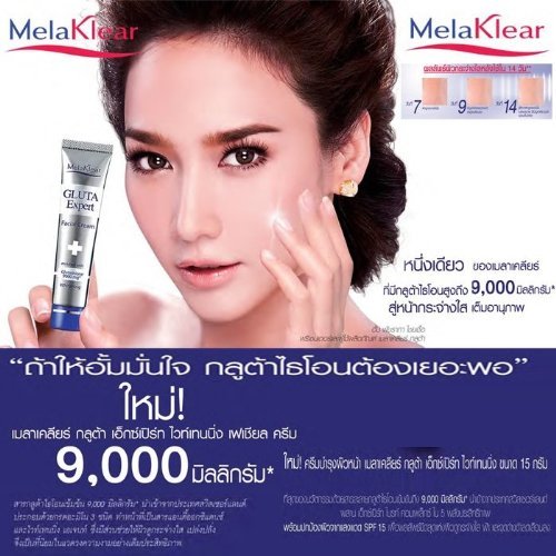 -. Binding : Misc. -. Brand : Melaklear -. Feature : 100% Ultimate Glutathione for your skin. / The ultimate combination of whitening supplements to concentrated whitening cream is specially formulated with Glutathione 9000 mg* and Expert Bright Complex which contains 5 powerful ingredients. / Vitamin B3, Nano-Vitamin C,French Pine Bark Extract.Tomato extract and Grape Seed Oil. They work together to lighten the skin and reduce accumulated dullness while giving superior sun protection with SPF 15. / It reviews the skin to provide a radiant look and helps fade out dark spots effectively as beauty from whitin. / *from concentrated glutathione solution 9000 mg/9l -. Label : International Laboratories -. Manufacturer : International Laboratories -. PackageQuantity : 1 -. ProductGroup : Beauty -. ProductTypeName : BEAUTY -. Publisher : International Laboratories -. Studio : International Laboratories -. Title : Melaklear Gluta Expert Whitening Facial Cream 10g