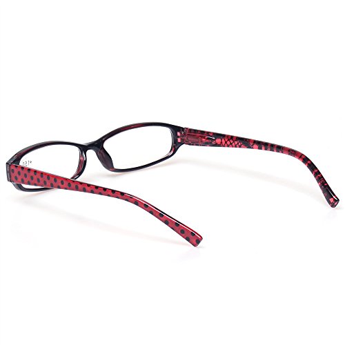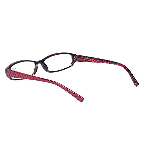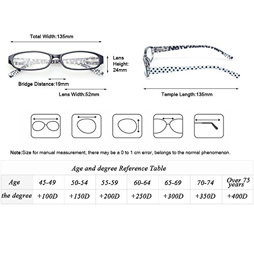 Product Description Specification: Width of the forehead frame :135mm/ 5.31" (approx.) Lens Height:24mm/ 0.95" (approx.) Lens Width : 52mm/ 2.05" (approx.) Leg Length :135mm/5.31" (approx.) Color:Black Red Purple Brown White Please specify the frame color and lens strength when pay for this.Thanks! Classic-shaped frames, look good on any face. help glasses fit your face Material : PC Frame, AC Lens,Head Size:Narrow to Medium Diopter available: 100 150 200 250 300 350 400 Other diopter: 125 175 225 275 450 500 600 Note: Due to the difference between different monitors, the picture may not reflect the actual color of the item. Thank you! Size for manual measurement, there may be a 0 to 1 cm error, belongs to the normal phenomenon. Package includes: 3 x Reading Glasses
