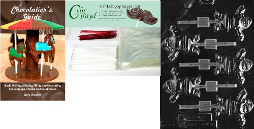 Cybrtrayd Chubby Waving Santa Lolly Chocolate Mold with Chocolatier's Bundle of 25 Lollipop Sticks, 25 Cello Bags, 25 Red Twist Ties and Chocolatier's Guide