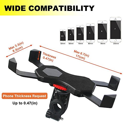 Material :Nylon Plastic Color : Black Approx Size : 120 x 115 x 60 mm/ 4.7" x 4.5" x 2.4" Applicable : Bike Sport Packing : Phone Holder * 1