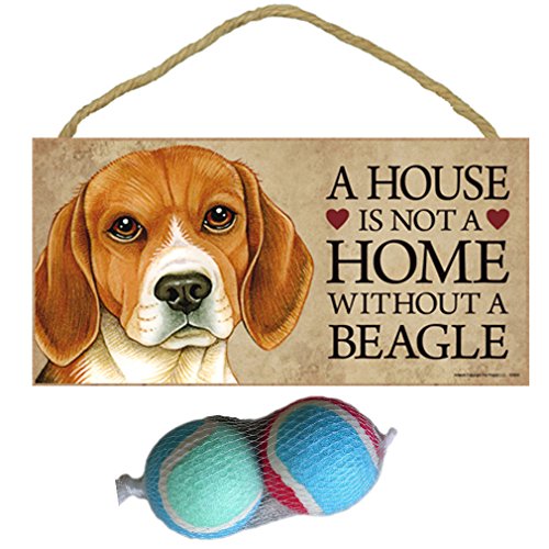 SJT A House is not a Home Without a Beagle Wood Sign Plaque Bundle with 2 Fetch Balls
