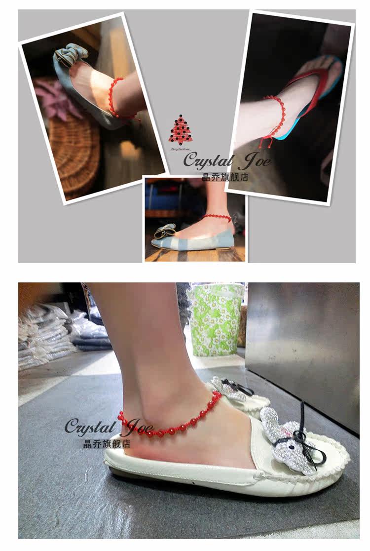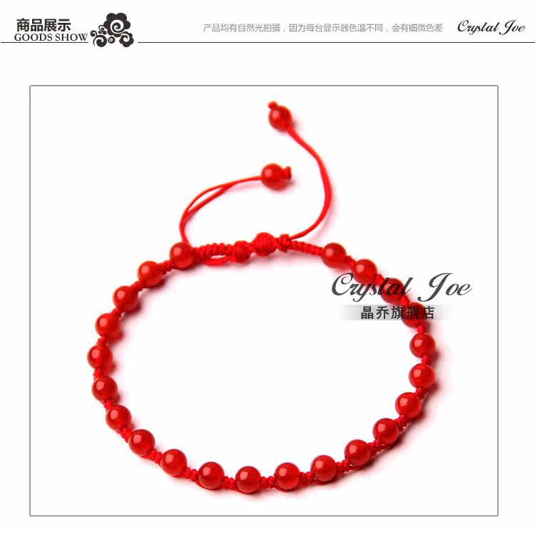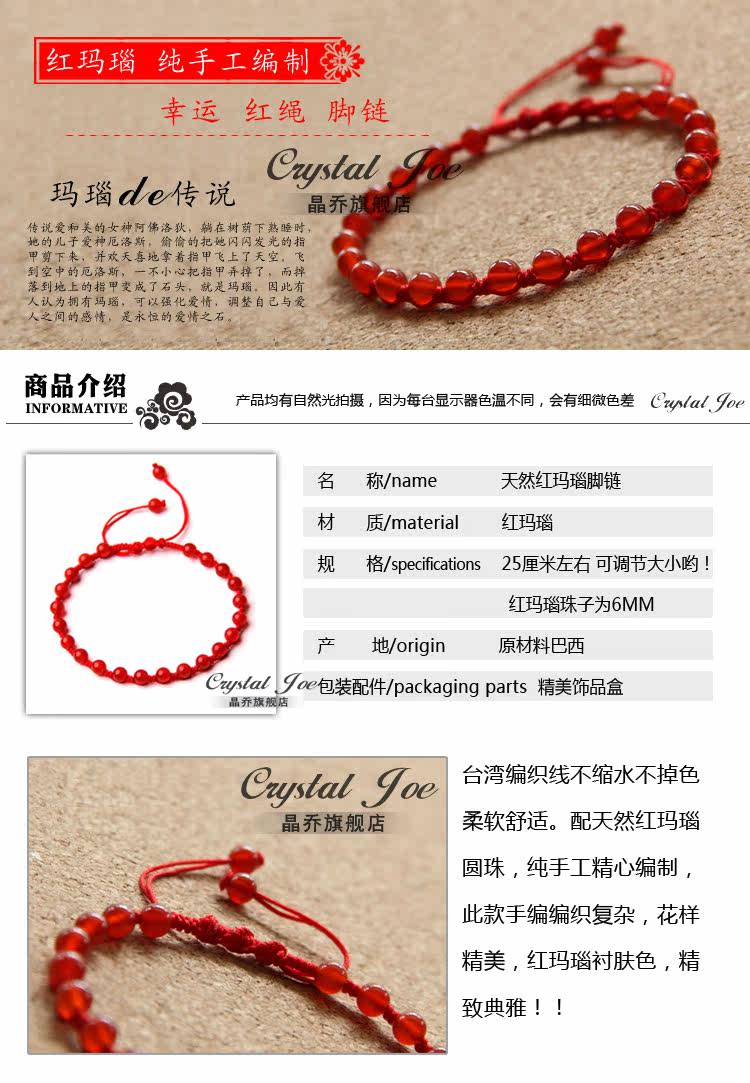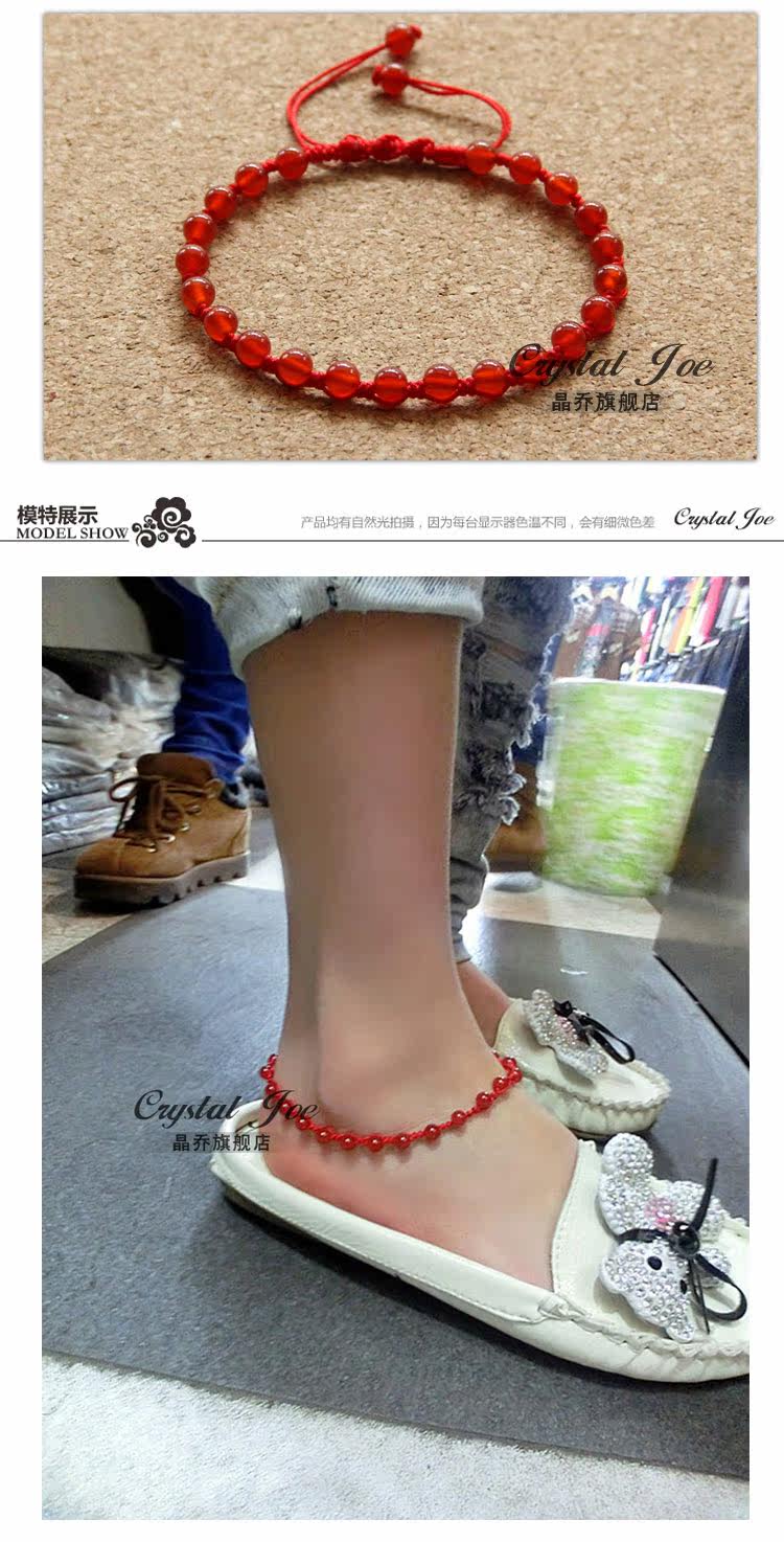 天然水晶 纯手工编制红玛瑙石榴石幸运红绳时尚脚链 男女款