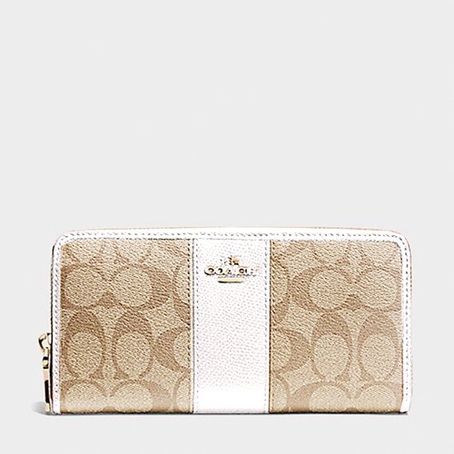 COACH SIGNATURE STRIPE WALLET - LT KHAKI / CHALK
