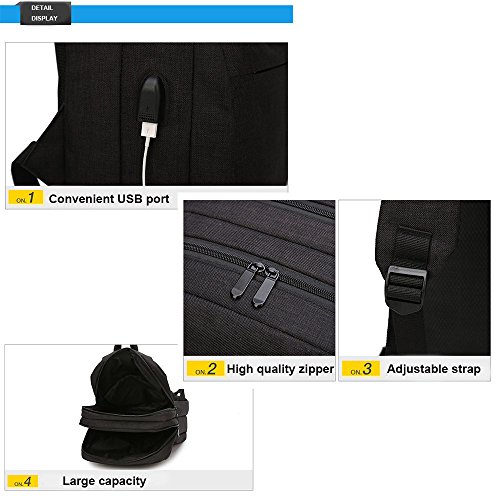 -. Feature : DIMENSION: 15.7 x 11.8 x 4.7 inch, fits most portable computers under 15.6 inches / USB CHARGING PORT: External USB with built-in charging cable offers a convenient charging by connected with the Portable Charger and your electronic device, such as your Amazon Kindle ? Android devices. / MULTI-USED: For portable computer, notebook, iPhone, iPad, pen, keys, wallet, books, clothes, bottle, umbrella and more, keeping all your stuff organized and you never worry about your stuff will be cluttered inside / DURABLE MATERIAL: Made From tear-resistant Durable Eco-Friendly Nylon Fabric With Two "S" Curve Padded Shoulder Straps, Offers Light-Weight Carrying and of force reinforcement / MULTIPURPOSE?Backpack built with laptop compartment, perfects for business traveling, weekend getaways, go to college, shopping and other outdoor activities in daily life