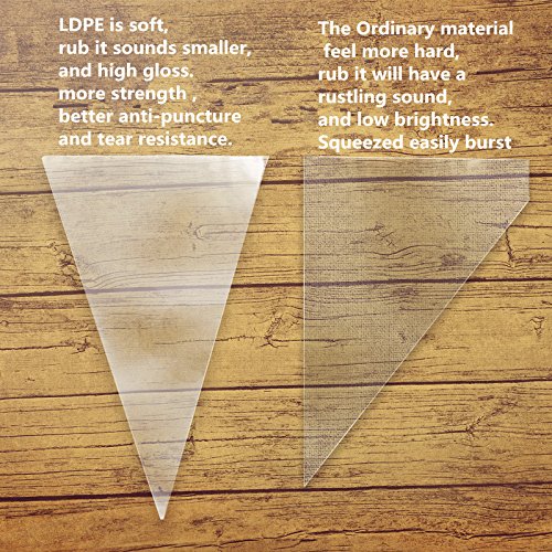 Why Thsinde use LDPE to make disposable pastry decorating bags? LDPE could made the disposable icing bags have more strength ,better anti-puncture and tear resistance. 100pcs,16 inch LDPE piping bags let you have a enough time to enjoy without any concerned. 0