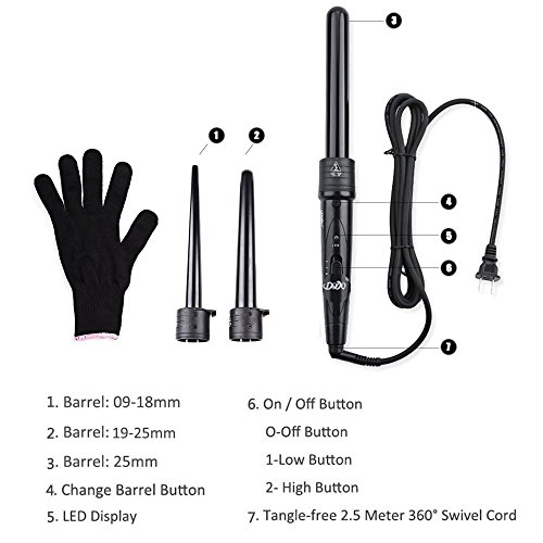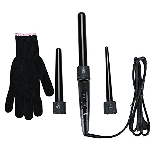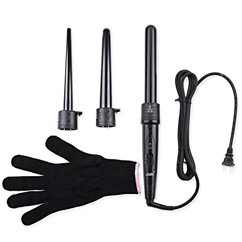 Hair Curling Iron 3-in-1 Hair Curler Tourmaline Ceramic Hair Roller Wand Tip Set with Temperature Control, 3 Interchangeable Barrels and Heat Protective Glove, Black