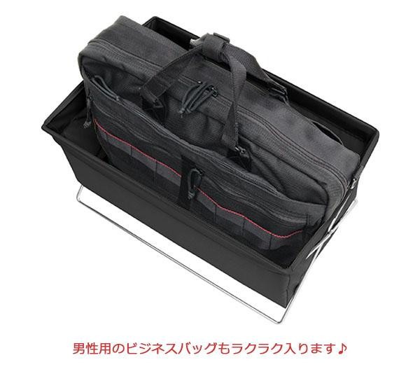 男性用のビジネスバッグもラクラク入って、イス下にも置ける使い勝手が良いサイズの手荷物入れ。袋部分がオールナイロン生地なので、使用時の見た目がスマートです。 |