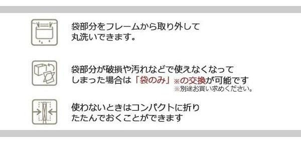 | 仕様 | 耐荷重:約3kg 収納目安:1人分 洗濯可(袋部分) |