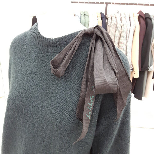 티렌 라우드넥에 큼직한 리본으로포인트를준 아이템입니다