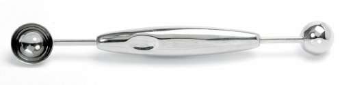 Studio : Norpro Publisher : Norpro Binding : Kitchen Product Description Easily cut decorative balls from melon, butter, apples, potatoes, cheese and ice cream. This double melon baller has two different sized scoops ( 1-inch and 1-1/4-inch diameter) with a sharp edge, so carving melons takes almost no time or effort. Can also be used as a cookie drop. 0