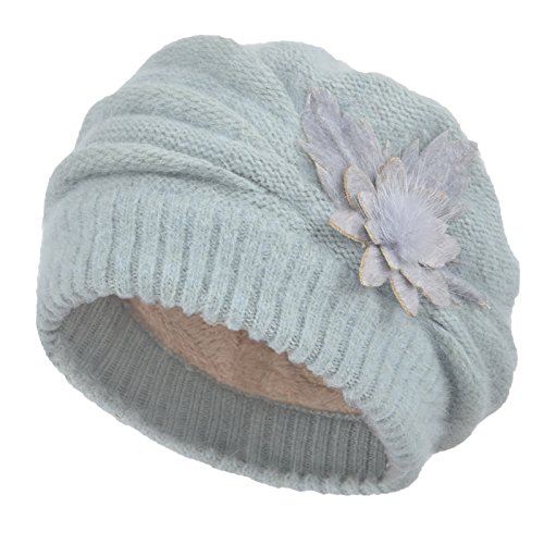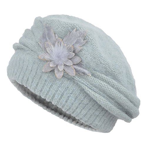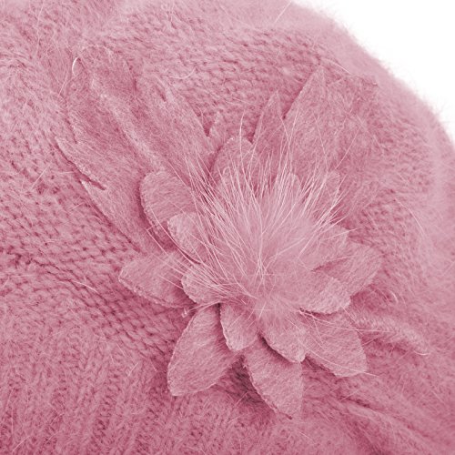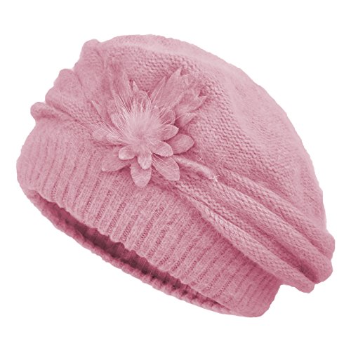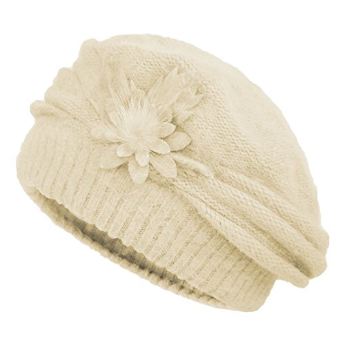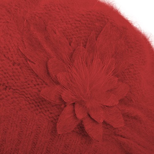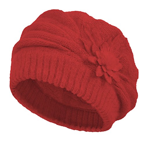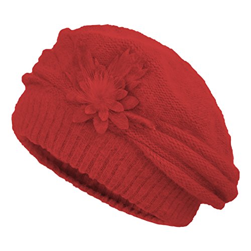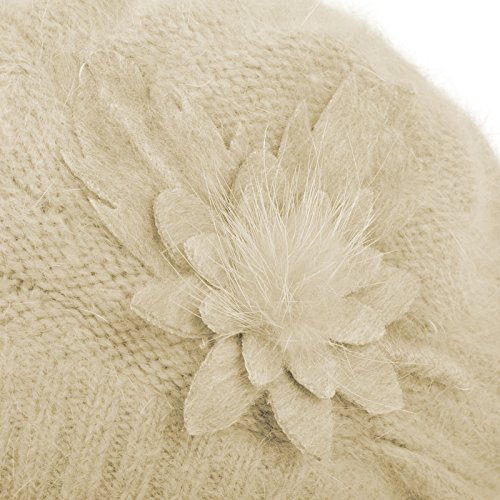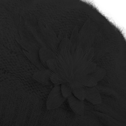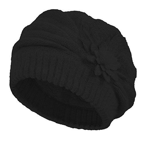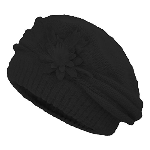 JaneyRubbins Women's Winter Hat French Beret Solid Floral Decoration Knit Beanie Cap