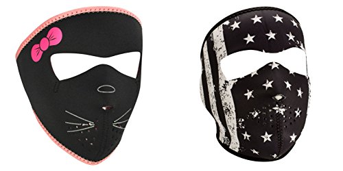 -. Feature : This Product is a 'Bundle' of 2 Neoprene Face Mask Items identified as a 'Kitty Cat' and a 'Black & White Vintage American Flag' / The First Facemask Item is the ZanHeadgear 'Kitty Cat', Child / Kid Sized, Full Face Neoprene Face Masks / The Second Facemask Item is the ZanHeadgear 'Black & White Vintage American Flag' Full Face Neoprene Face Masks / Face Masks / Ski Mask Items are made of Durable, Naturally Warm & Water Resistant Neoprene Face Mask Material / Face Mask Sizes are adjustable, by up to 2 inches, using the Hook & Loop closure, located at the back of the head