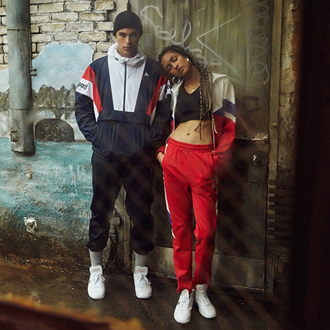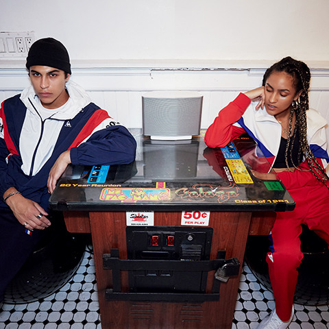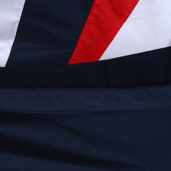 어깨 부분 절개 배색이 스포티함과 함께 레트로함을 더하였으며