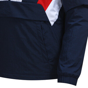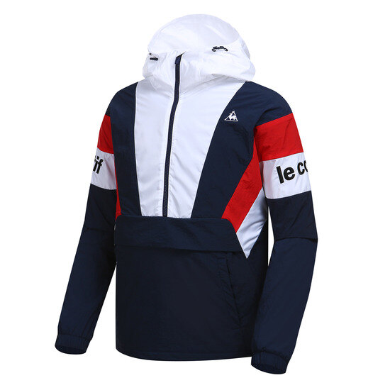 레트로한 디자인의 후드 반집업 자켓입니다.