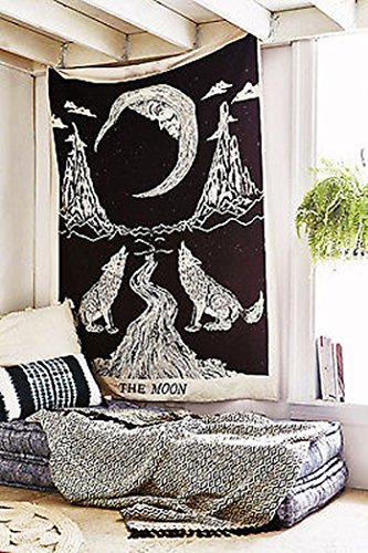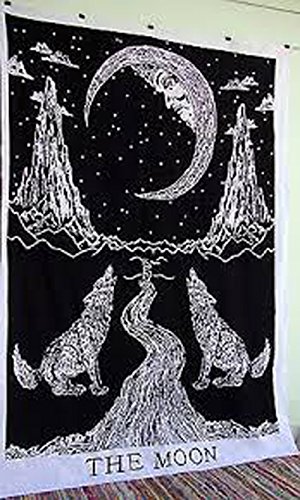 Crying Wolf of The Moon Tapestry wall hanging Bohemian Bed Sheet Ethnic Wall Art,Indian Mandala Tapestry,Hippie Tapestry,Bohemian Bedspread Tapestry,Dorm Tapestry, Tapestry Wall Hangings by raajsee