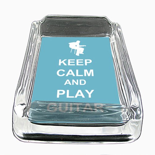 -. Title : Glass Square Ashtray Keep Calm and Play Guitar Design-011