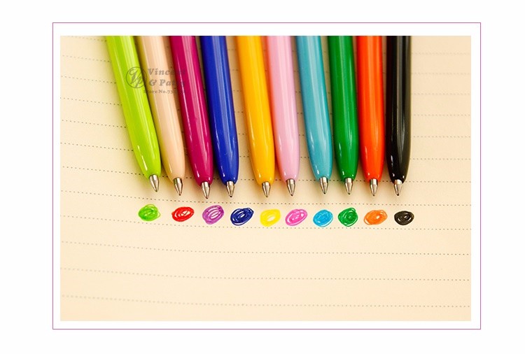 12 pcs/Lot Rainbow color Gel ink pen Slim body Click type ballpoint pens Canetas escolar Office supplies material school 6248