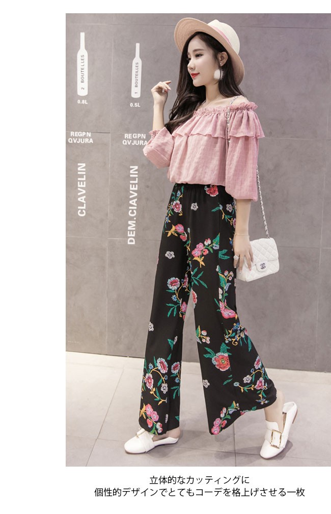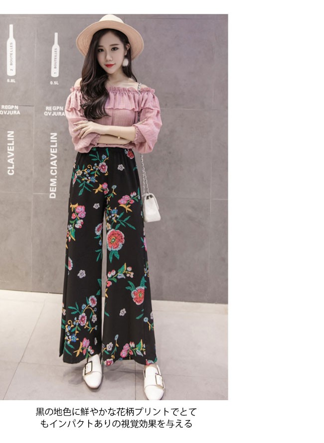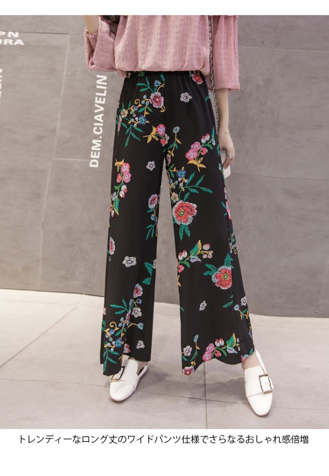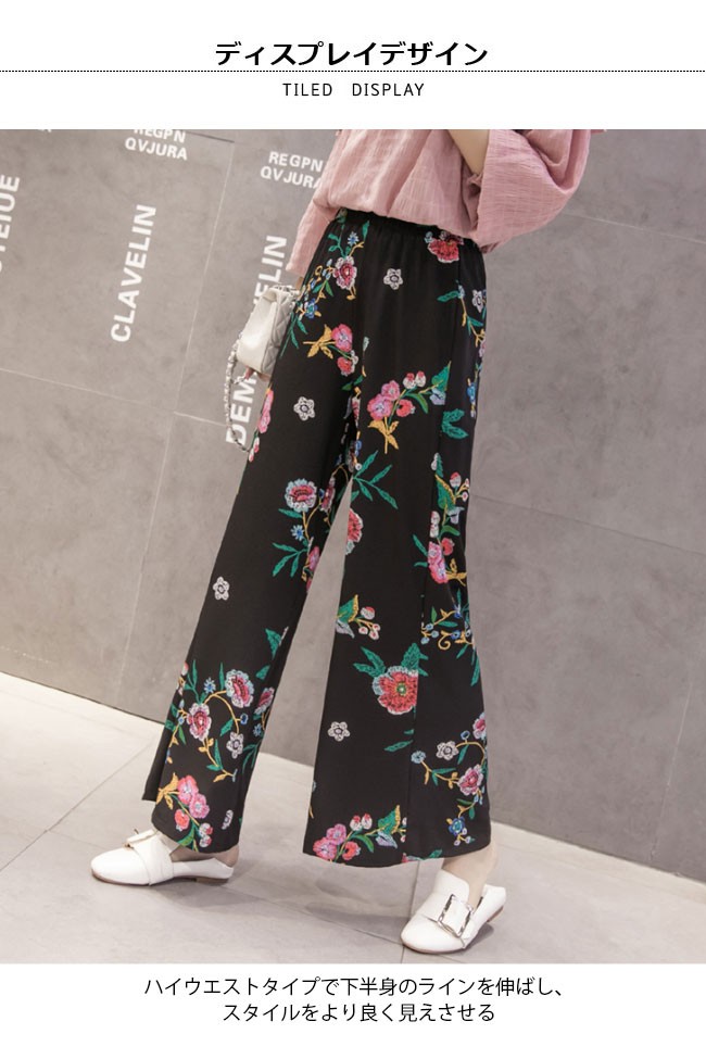 ロングパンツ レディース 花柄 ワイドパンツ 体型カバー 女性用 ラッパズボン ロング丈 ハイウエスト ボトムス 春秋物 夏物 トレンディーレディース用のロングパンツが登場ハイウエストタイプで下半身のラインを伸ばし、スタイルをより良く見えさせる黒の地色に鮮やかな花柄プリントでとてもインパクトありの視覚効果を与えるトレンディーなロング丈のワイドパンツ仕様でさらなるおしゃれ感倍増立体的なカッティングに個性的デザインでとてもコーデを格上げさせる一枚カラー:写真色素材 ポリエステルサイズ(cm) M L XLM 総丈90 ウエスト66-80 ヒップ100L 総丈91 ウエスト68-82 ヒップ102XL 総丈92 ウエスト70-84 ヒップ104ご注意:※サイズは平置きサイズです。素人採寸ですので、若干の誤差がございます、ご了承ください。