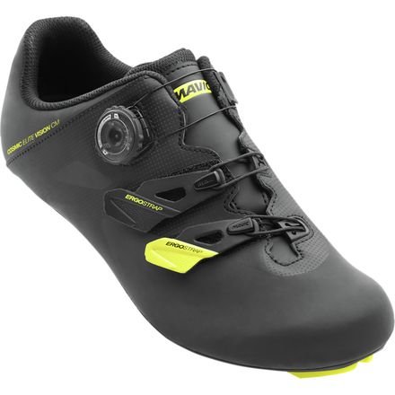 Studio : Mavic Publisher : Mavic Binding : Misc. Product Description The shoulder seasons always present a sense of urgency in our riding. Fall brings shorter days as we try to squeeze in some quality rides before winter sets in. In the early spring, cabin fever has us itching to get off the trainer and hit the roads. We have different kits that we wear for each season, why would our shoes be any different? If you are looking to maximize your riding experience in these type conditions where lighting may be low or weather might be unpredictable, the Men's Cosmic Elite Vision CM Shoe from Mavic will surely keep your feet comfortable and dry and provide additional visibility to drivers. The Clima Mavic construction on the front half of the shoe keeps your feet dry and insulated and prevents water absorption during the course of the ride. The upper material is super easy to clean so you can wipe the mud and grit off from your heroic day in the saddle and have them looking like new again. Mavic yellow highlights and 360-degree reflective black and silver synthetic finish don't sacrifice breathability. These shoes are highly visible in conditions typically seen in fall and spring that have you out riding before the sun rises and after it sets. Mavic's DNA of creating high-quality race shoes that pros count on extends to these shoes. The footbed consists of a high-quality OrthoLite insole designed to prolong comfort for the long days and offer a good fit which increases performance. The Mavic Ergo Dial and hook-and-loop straps handle closure duties and it's easy and precise retention system makes tightening down the shoes right before an extended climb or sprints a cinch. Harnessing all of your pedaling power is the Energy Carbon Comp Outsole which is super light, extremely stiff, and its thin outsole with carbon reinforcement and composite glass fiber and polyamide inserts ensure a low stack height to the pedals. 0