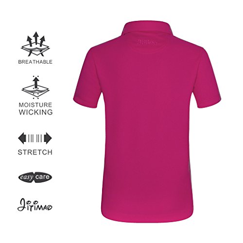 Boys Golf Dri Fit Polo Shirt for Age 5-15, JITIMAO Breathable Performance Short Sleeves T-shirt Slim Fit,Rose Red,X-Small / 5-6