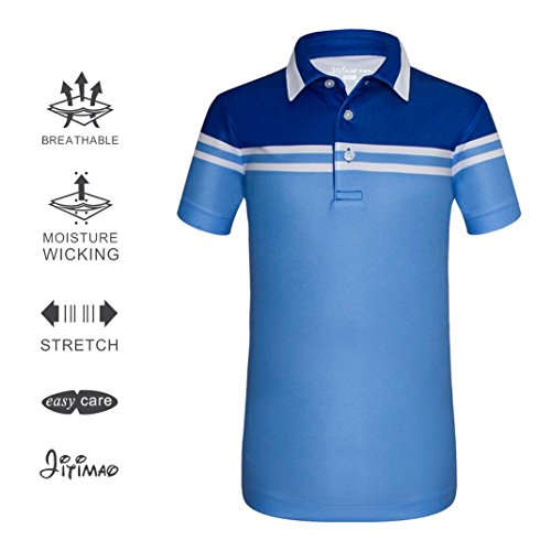 JITIMAO Boy's Golf Shirt Short Sleeve Performance Polo Shirt, Blue, Medium 9-13 Big Boys