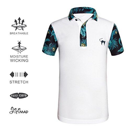 JITIMAO Boy's Golf Shirt Short Sleeve Performance Polo Shirt, White, Large 13-17 Big Boys