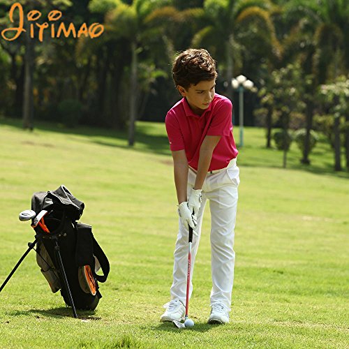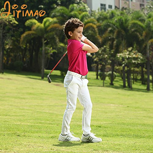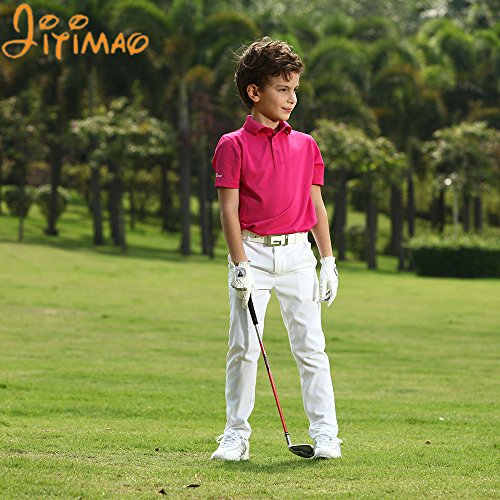 JITIMAO Boy's Golf Shirt Short Sleeve Performance Polo Shirt, White, Medium 9-13 Big Boys
