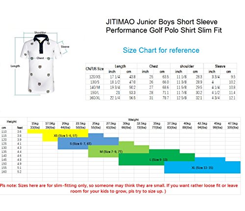 JITIMAO Boy's Golf Shirt Short Sleeve Performance Polo Shirt, White, Medium 5-6