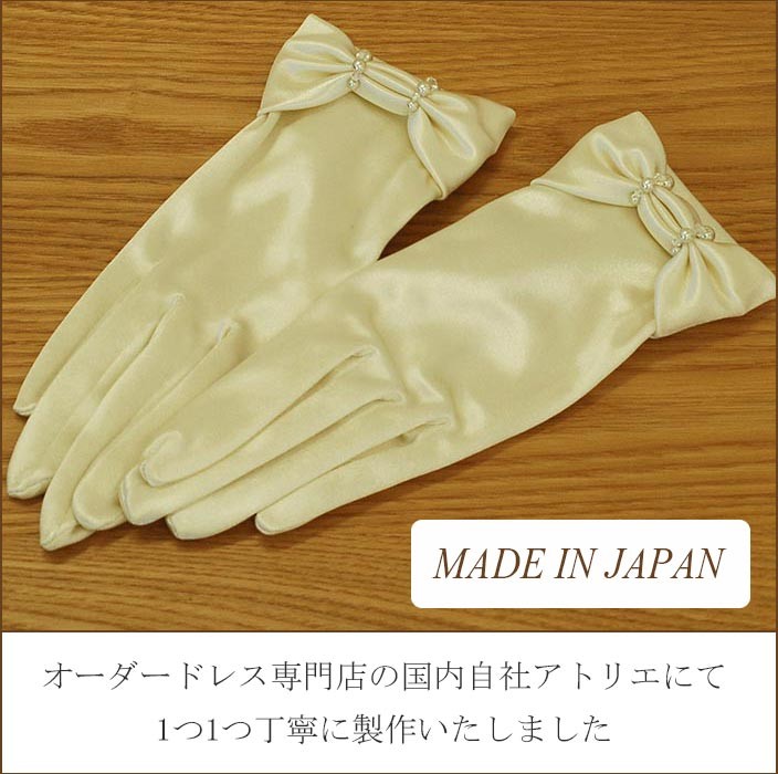 リボン風装飾のサテン・ショートグローブです。
