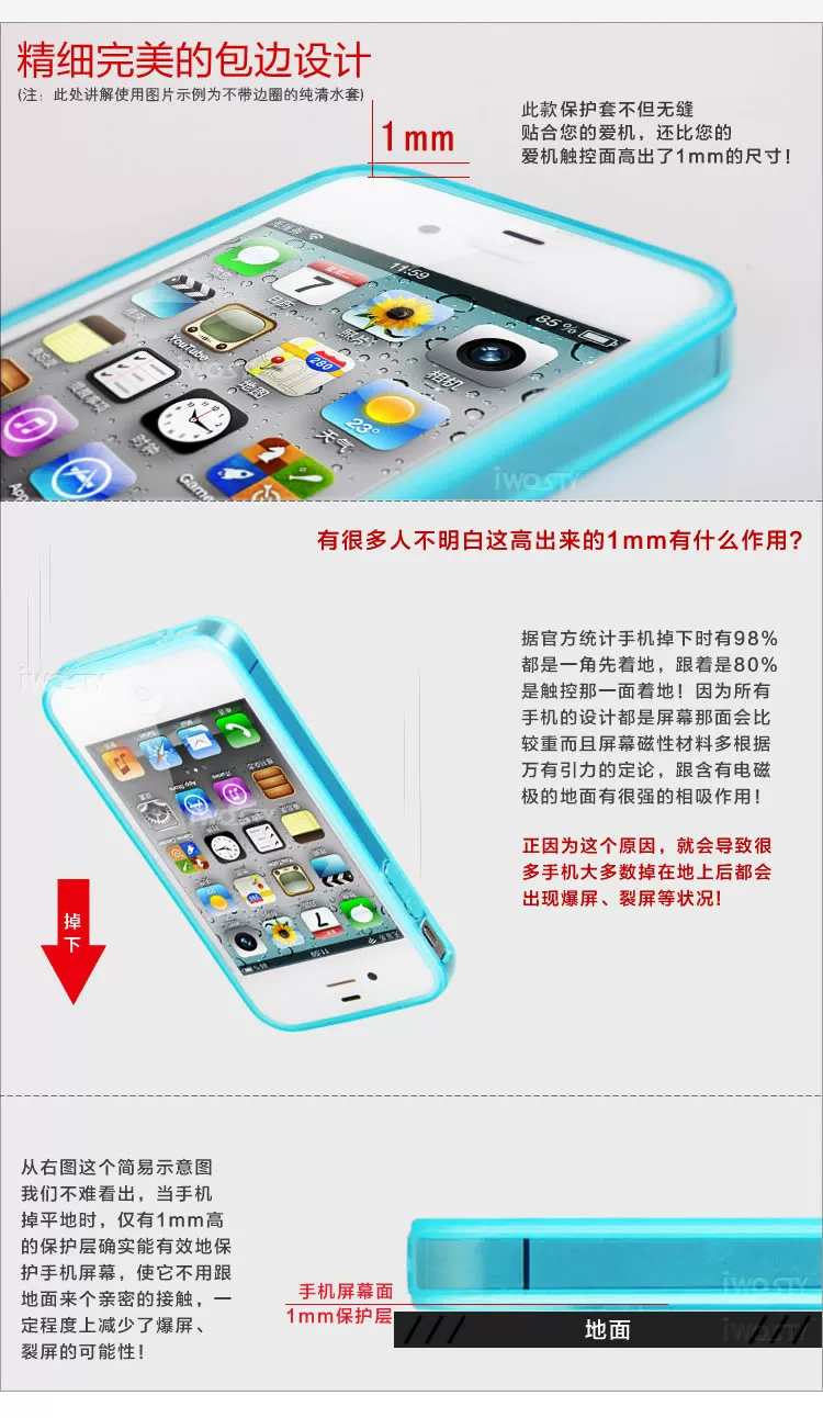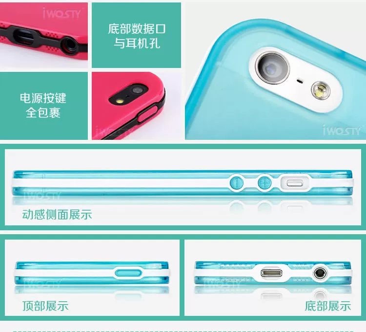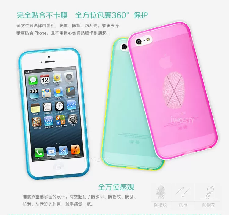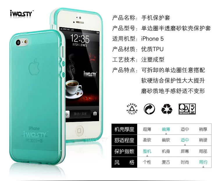 Protective sleeve edges just stuck in the iPhone5 metal frame position, that is reasonable to protect the metal sides and reducing the maximum utilization of the screen, and easy to loose deformation; power key, volume control keys for the whole package of frosted, pressed feel relaxed and comfortable.